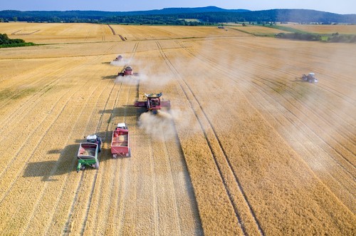 Some farmers own their own harvest equipment, and many others utilize the services of professional, custom harvesters. The latter have lots of equipment and employees who travel from south to north following the maturing of the wheat. They can harvest the wheat from a large field (or several fields) in one day.